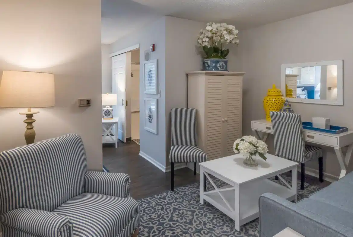 Located in one of the eastern suburbs of Nashville, our community offers a maintenance-free lifestyle that allows you to relax and entertain loved ones and family members in the comfort of your private apartment, our spacious common areas, or shaded courtyard. Our skilled, compassionate caregiver team provides individualized, personal care, with a variety of mindful programs uniquely designed for our Memory Care and Assisted Living residents. Daily activities and events, outings, and mealtimes in our vibrant dining room enhance the lives of our residents. And we’re pet friendly!