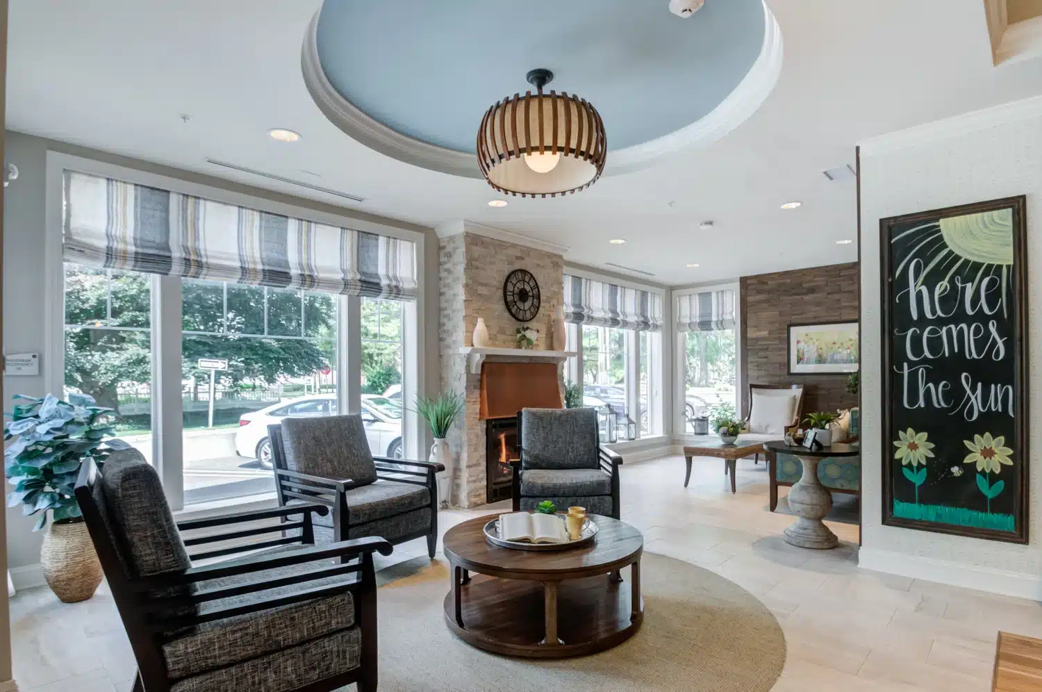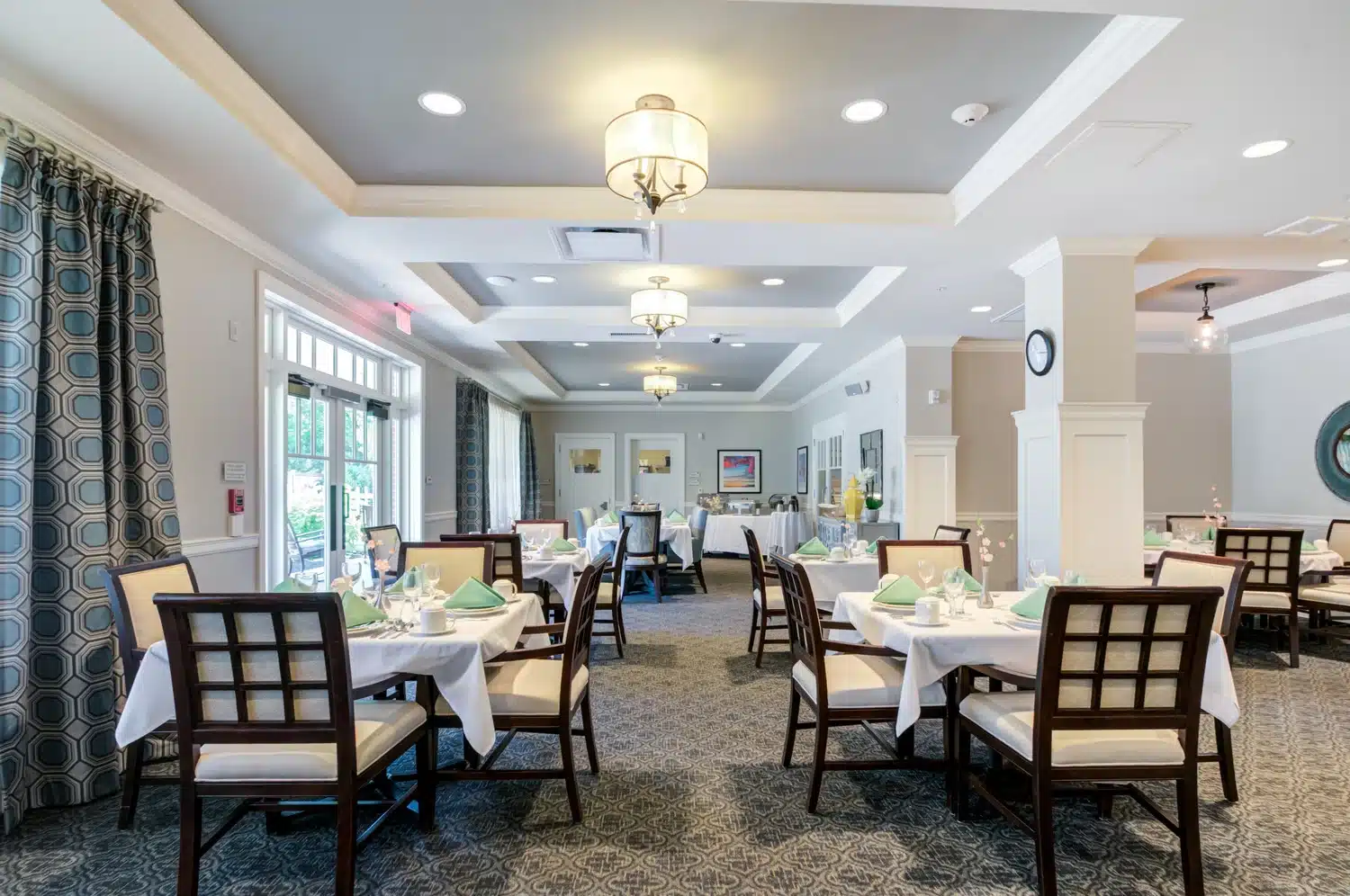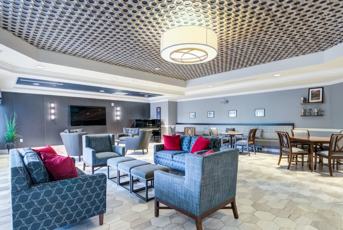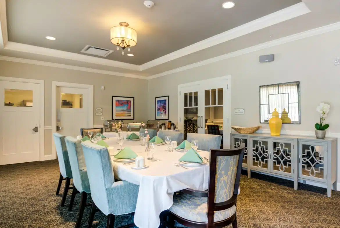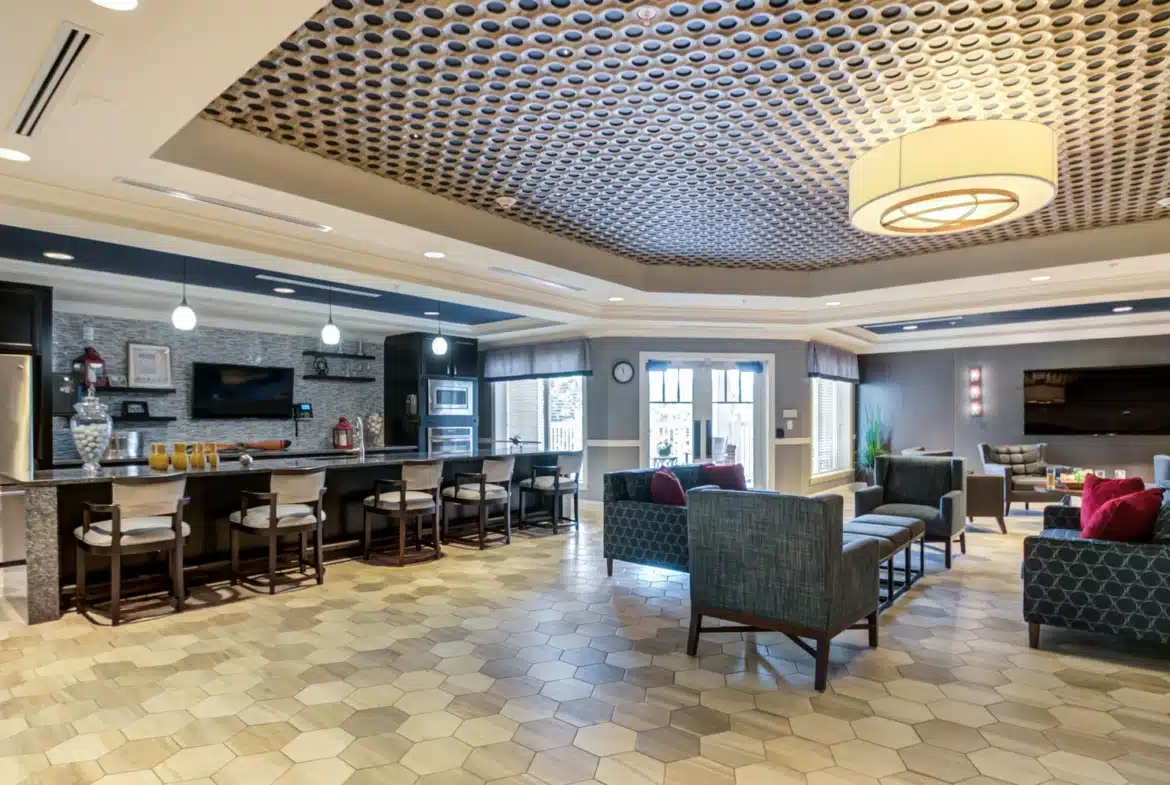 - Relaxing Living & Activity Rooms: Connect with neighbors at the latest community event or enjoy the morning paper in our expansive library. These inviting spaces are perfect for any gathering or activity.