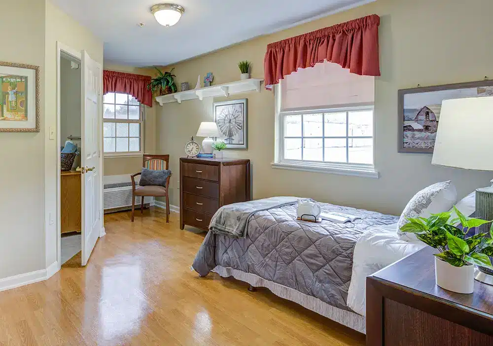 - Private resident rooms with memory boxes and half-baths