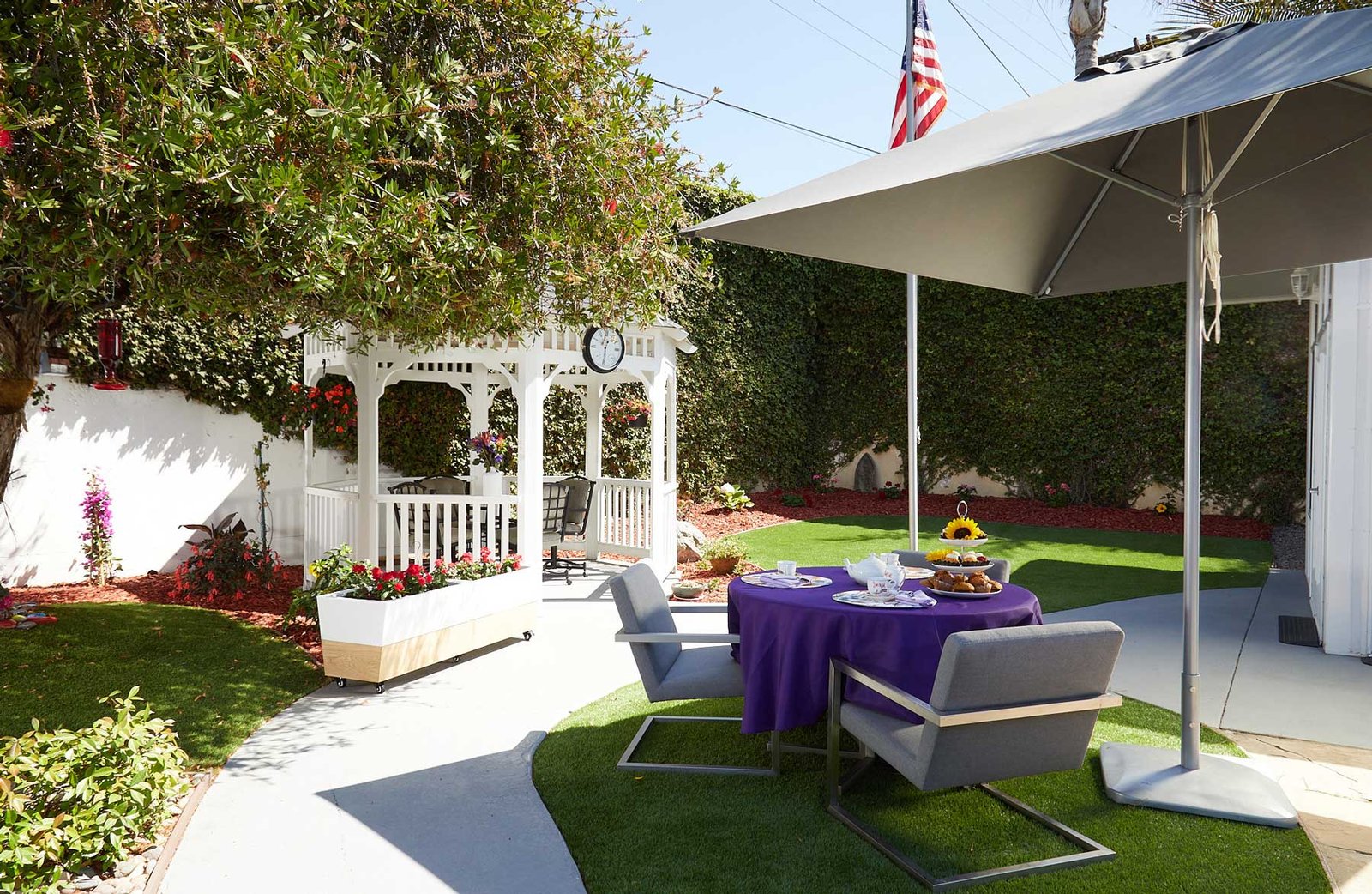Outdoor Spaces: Enjoy the sunshine and California outdoor lifestyle at AvantGarde of La Jolla. Residents can relax at one of our two courtyards, one featuring a miniature putting green and the other a great place for gathering for chef-prepared outdoor BBQs. Visitors also enjoy family conversation under the shade of the garden gazebo.