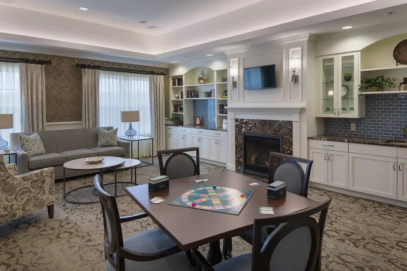 Working on your short game? Our Brightview Randolph senior living community has an outdoor putting green and a bocce court! When the weather turns colder, you can cozy up and enjoy our fireplace, learn a new game in the game room, discover a love of music, or develop a new hobby. Get a massage, haircut, or workout – all in the comfort of your own community.