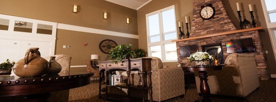- Our elegantly designed facility has several community seating areas for residents and guests to lounge indoors or outdoors.