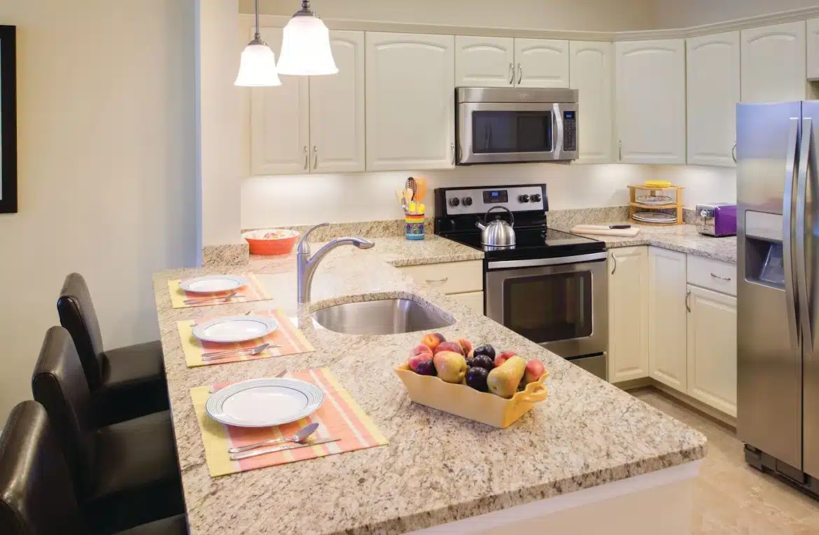 - Spacious dining with table and counter seating options