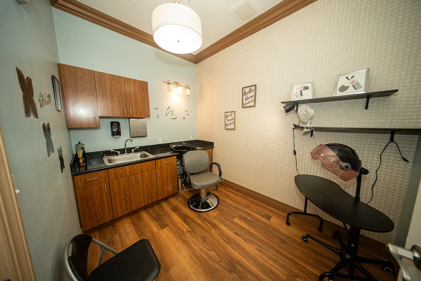 Our on-site salon provides care from head to toe, offering services such as haircuts and beard trims. We also collaborate with local providers to offer pedicures and massage therapy. Please inquire to learn more about these additional wellness services.