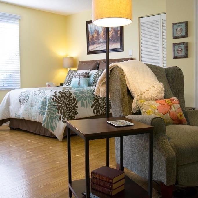 - Studios and 1-bedroom apartments. Choose from one of our fourteen different floor plans. Every apartment is equipped with a personal kitchenette and bathroom with handicapped accessibility features. Water and electric are included.