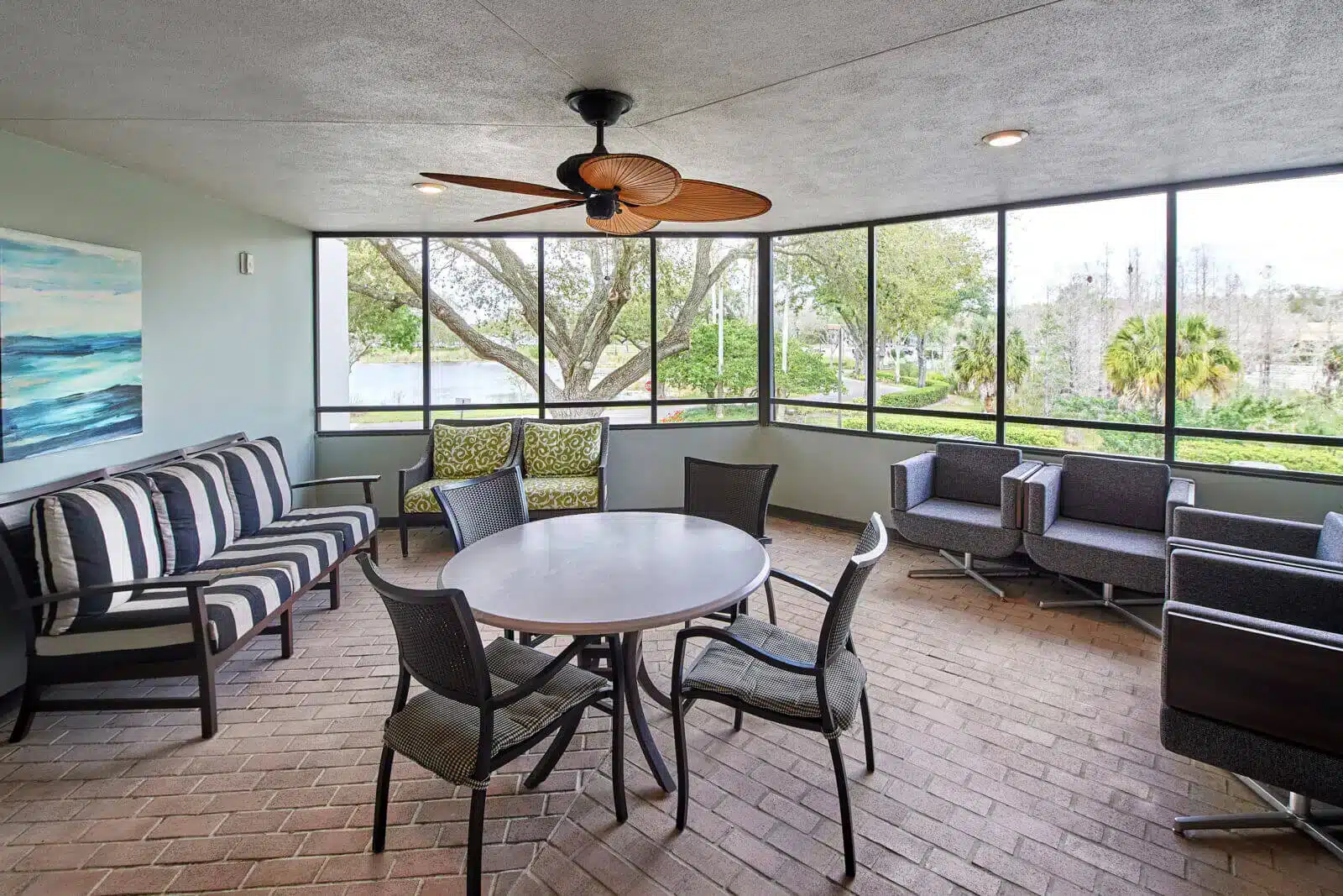 • Indoor and outdoor common spaces, including a large lake, relaxing lounge and sunny lanai