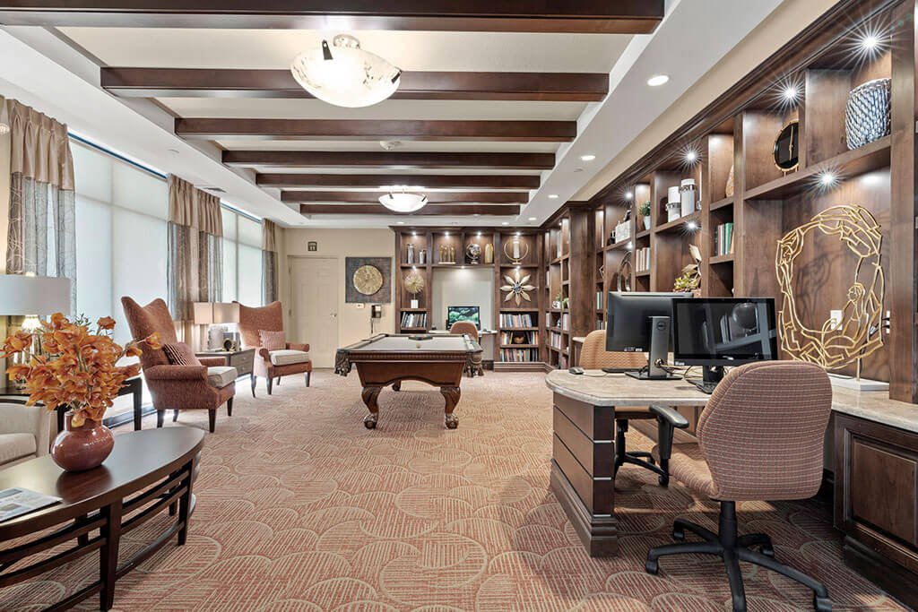 Seniors gather around the green felt in the billiards room with strategy in their eyes and smiles on their faces as the gentle click of eight balls can be heard. - Arts & Crafts Room