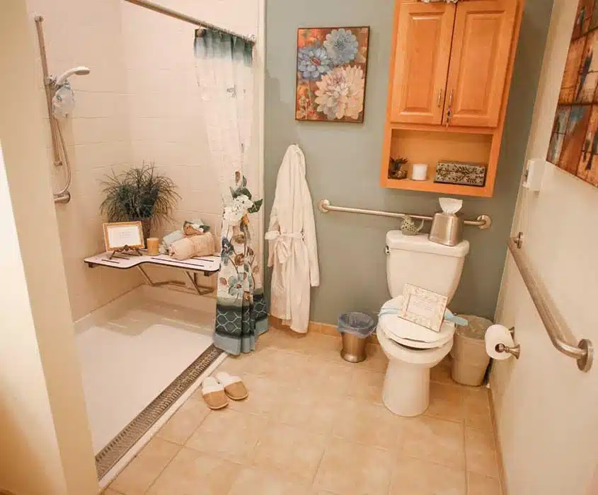 - Zero-entry showers, grab bars, and seating for ease and safety