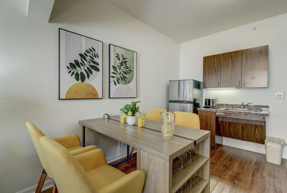 - Kitchenettes – Complete with granite countertops and stainless steel refrigerators