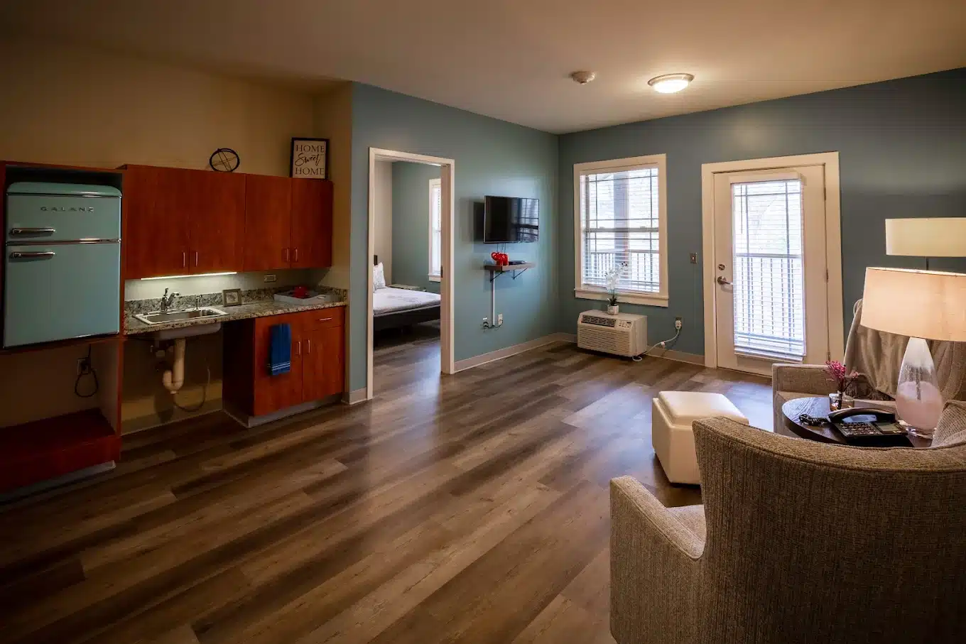 - Private One-Bedroom Patios – Community sun porch, courtyard, and other outdoor options for woodsy scenery and sunny relaxation