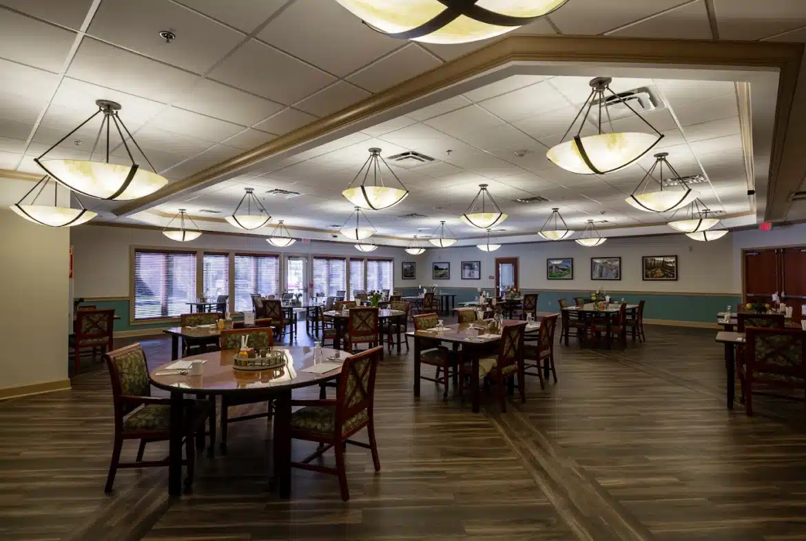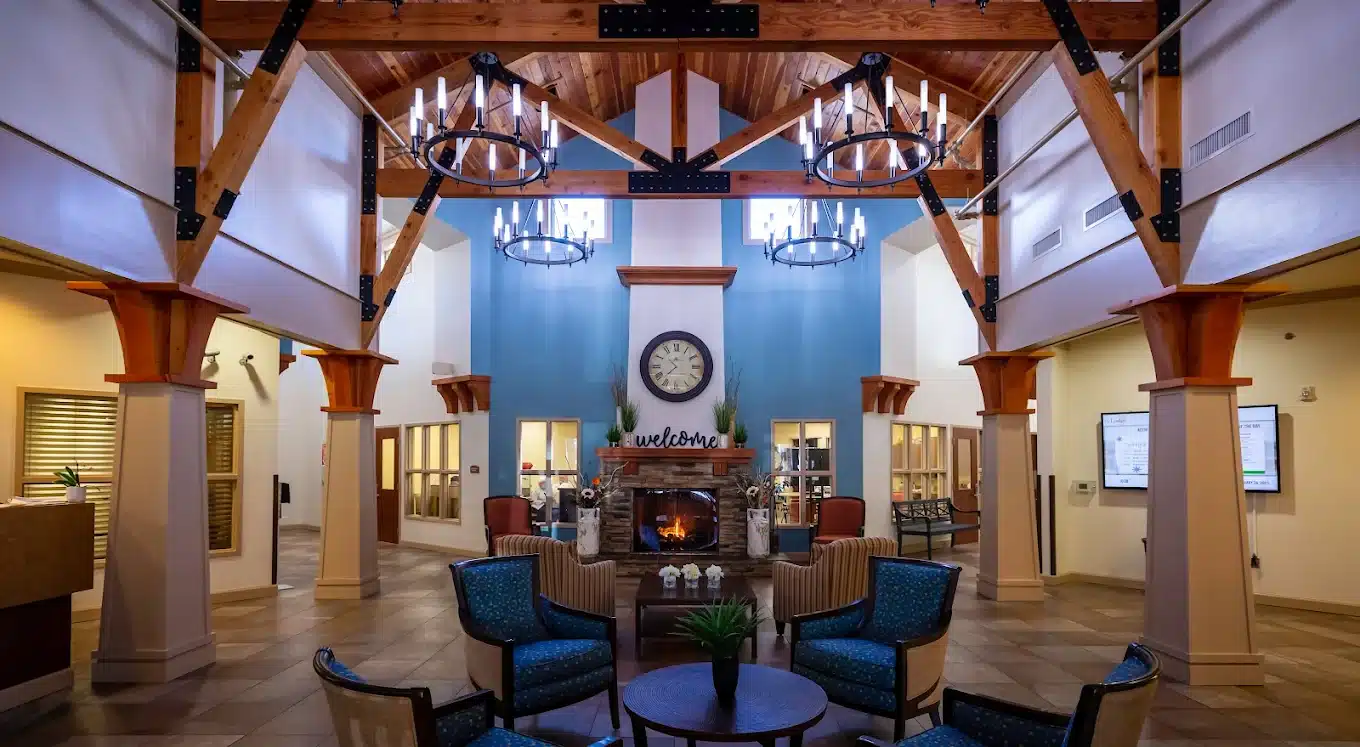 With high ceilings, chandeliers, and a country interior flushed with warm light, the Lodge is a beautiful place both inside and out. A place where families come together and where meaningful friendships are made—these are just some of the reasons why our residents love to call the Lodge home.