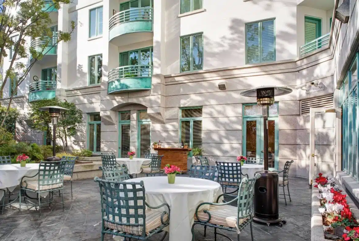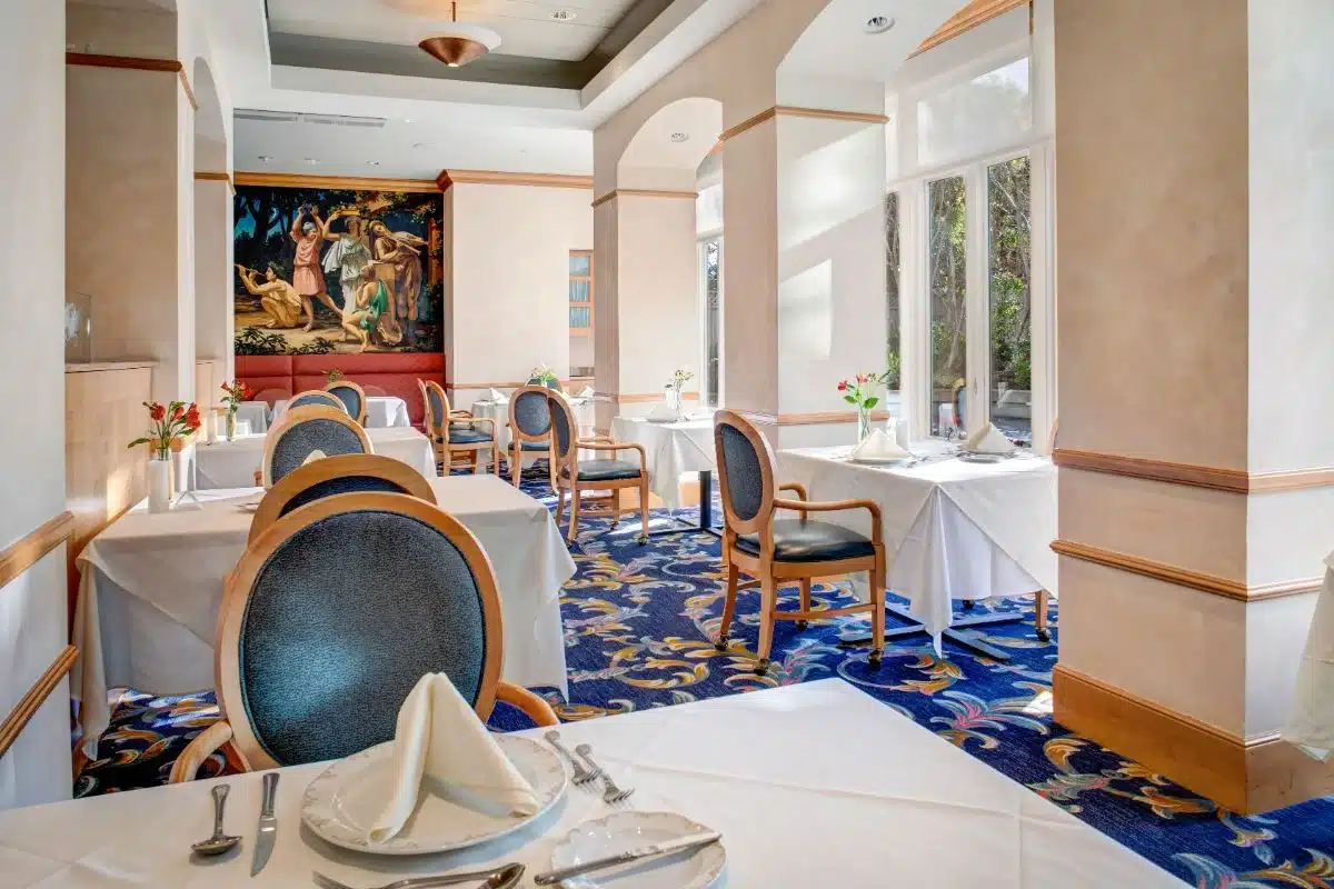 You’re welcome to dig into beautifully prepared meals served restaurant-style. Our culinary team loves featuring fresh California produce and serving up dishes tailored to each resident’s tastes and dietary needs. Our residents particularly enjoy our filet mignon, lamb curry, and pan-seared scallops with lemon beurre blanc. Our monthly Sunday brunch is a huge hit, as are the lovely confections created by our very own pastry chef. But one of the best parts? Al fresco dining in our lovely courtyard.