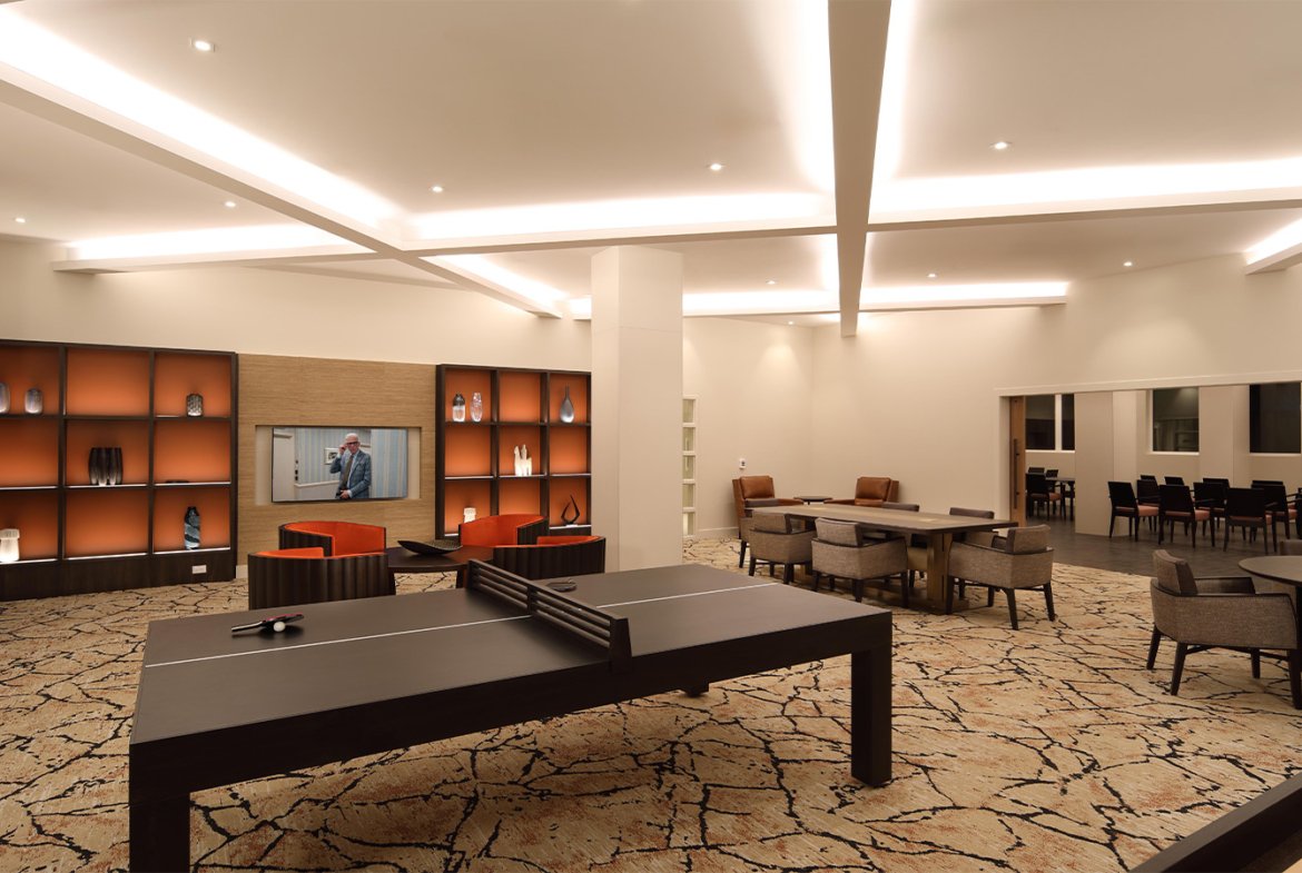Within the community, residents have access to an array of amenities, including a spacious lobby and library, fitness and wellness center, massage therapy room, and a salon — all curated to enhance your senior living experience. The crafts room, state-of-the-art theater, and inviting outdoor spaces offer ample opportunities for entertainment and relaxation.