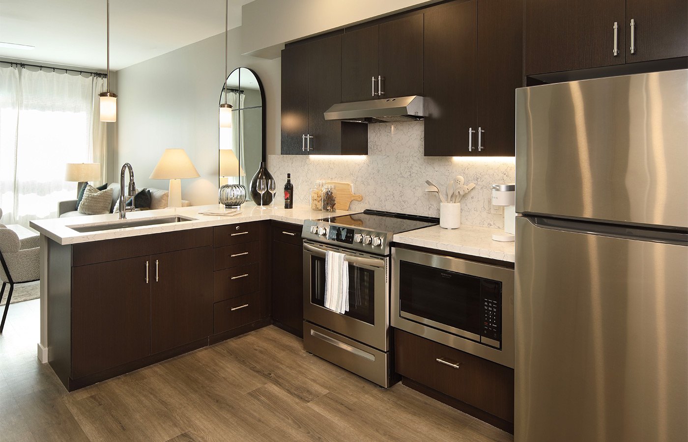 Living choices range from studios to one- and two-bedroom options, all outfitted with stainless steel appliances, upgraded cabinets and fixtures, and elegant vinyl wood plank floors. Each space is not only modern but exceptionally comfortable, and there are no housekeeping and maintenance issues to contend with. With a team of specially trained Nayas, we focus on creating a nurturing, tight-knit community.