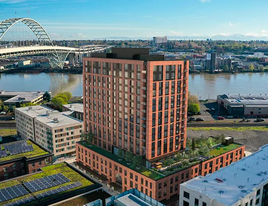 An inclusive community for seniors with river and mountain views in the Pearl District in Portland.