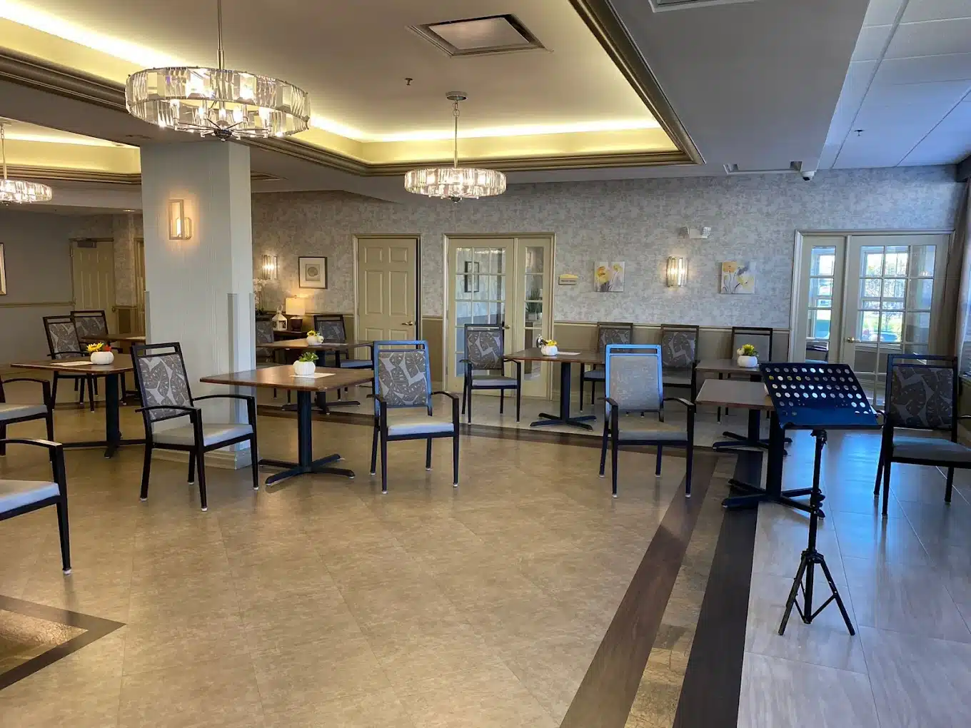 For the safety and well-being of cognitively impaired residents, the Memory Care neighborhood is secured to prevent wandering. The wide and friendly corridors are easy to navigate, promoting a sense of familiarity and security.