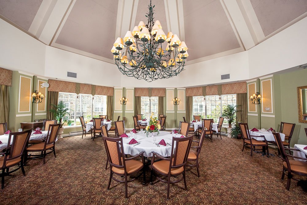 The Historic Great Hall at Winchester Gardens was designed by famed New York architect John Russell Pope and constructed in 1927. It is as awe-inspiring today as it was when it first opened. This beautiful structure is now host to a variety of resident events and activities and adds true historic charm to our luxury senior living community in Maplewood.